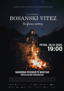U petak, 26.12.2025. u 19,00 sati u sali Narodnog pozorišta biće upriličena projekcija filma “Bosanski vitez”.
