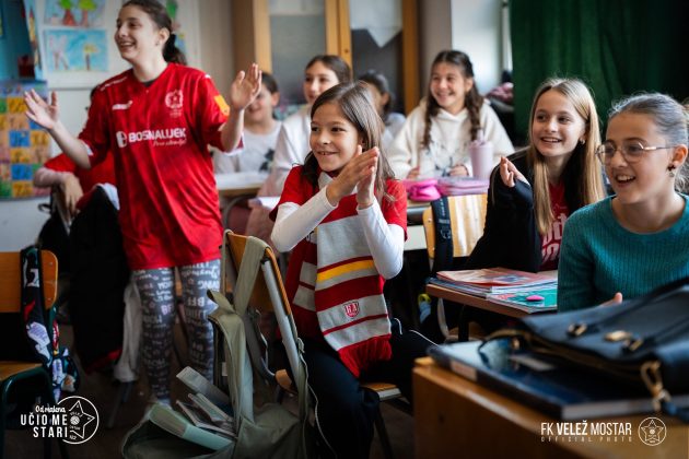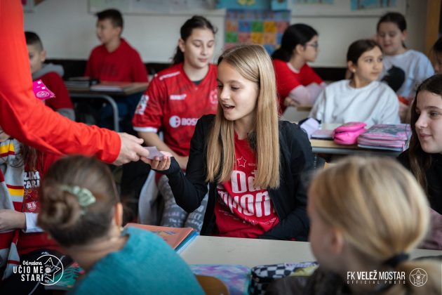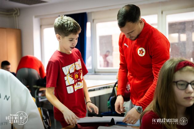 Fudbalski klub Velež zahvaljuje se rukovodstvu škole, nastavnicima i učenicima na gostoprimstvu i lijepom druženju, uz želju da se vidimo u što većem broju na tribinama stadiona Rođeni” – stoji u objavi FK Velež.