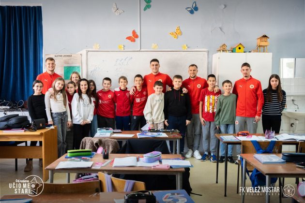 Fudbaleri Veleža posjetili su JU Osnovna škola “Mujaga Komadina” Mostar, gdje su u vedroj i prijateljskoj atmosferi proveli vrijeme družeći se sa učenicima ove škole.