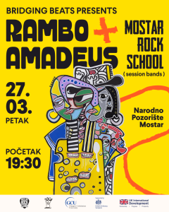 Koncert Ramba Amadeusa i session bendova Rock škole Mostar održat će se na Svjetski dan pozorišta, u petak 27.3.2026. godine u 19:30 sati u Narodnom pozorištu Mostar.