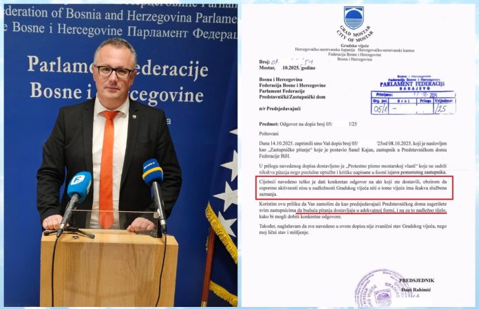 “Nakon što sam službeno, preko Parlamenta Federacije Bosne i Hercegovine, kao izabrani zastupnik, od vlasti Mostara zatražio da odgovore na situaciju oko imena mostarskih ulica – njihovog mijenjanja, izbacivanja imena osoba po kojima ulice nose naziv, ostavljanja samo nadimaka, pa čak i umetanja slova i izmjena prezimena, kao i činjenice da još uvijek postoje mostarske ulice koje nose imena po nacističkim zlikovcima – danas mi je iz Parlamenta proslijeđen odgovor predsjednika Gradskog vijeća Mostara, gospodina Đanija Rahimića.