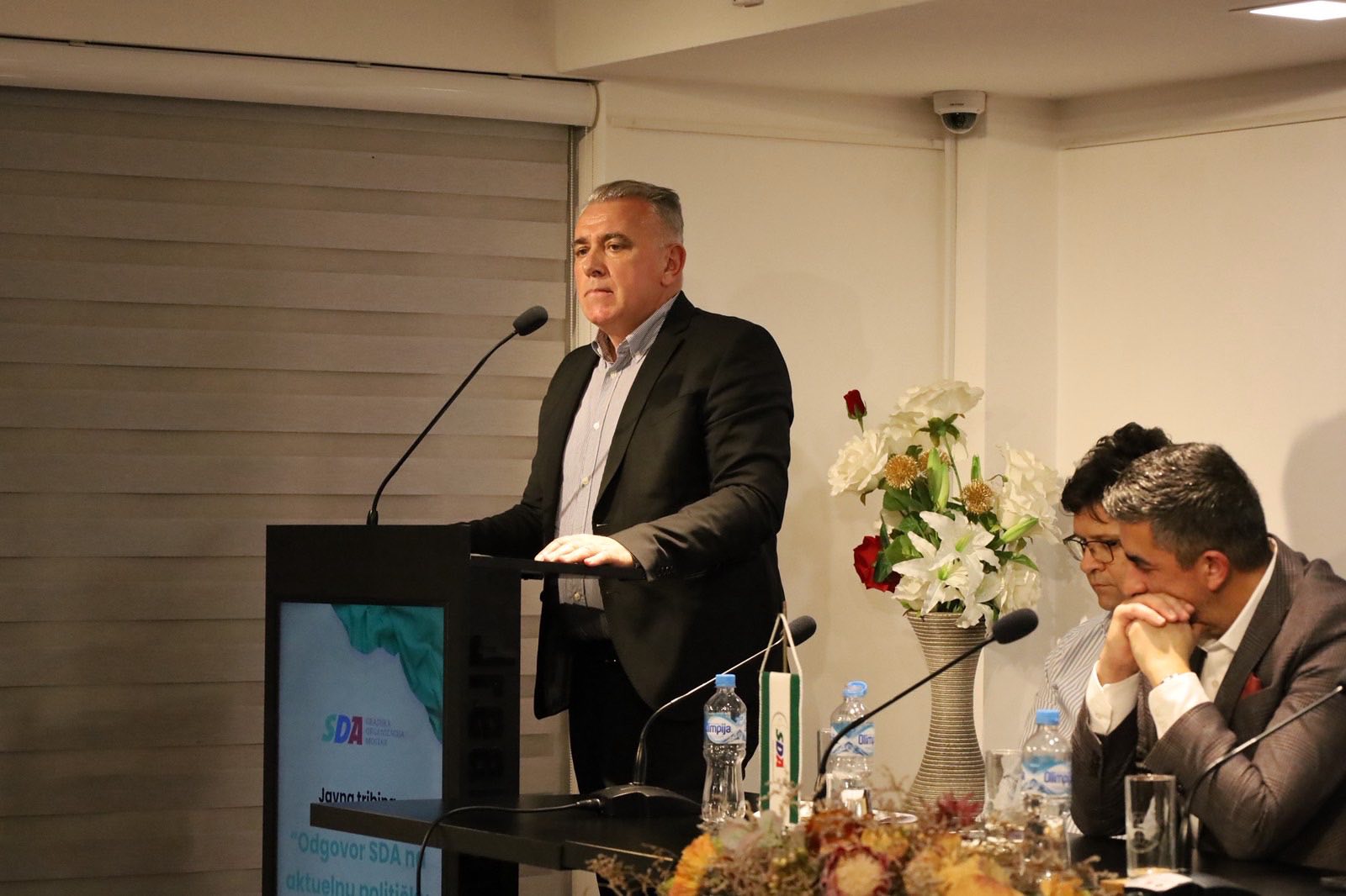 Govornici na javnoj tribini bili su: Anel Droce, predsjednik OGP-a Stari Grad, Alis Čolaković, predsjednik GO SDA Mostar i gradski vijećnik, Đani Rahimić, predsjednik Gradskog vijeća Mostar, Adil Šuta, ministar finansija HNK i potpredsjednik KO SDA HNK, Haris Šabanović, zastupnik u Parlamentu FBiH i potpredsjednik GO SDA Mostar, te Šerif Špago, zastupnik u Parlamentarnoj skupštini BiH i potpredsjednik SDA BiH” – stoji u objavi GO SDA Mostar.