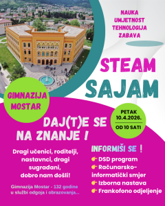 Gimnazija Mostar već tradicionalno u aprilu organizuje STEAM sajam – Sajam nauke, umjetnosti i tehnologije.