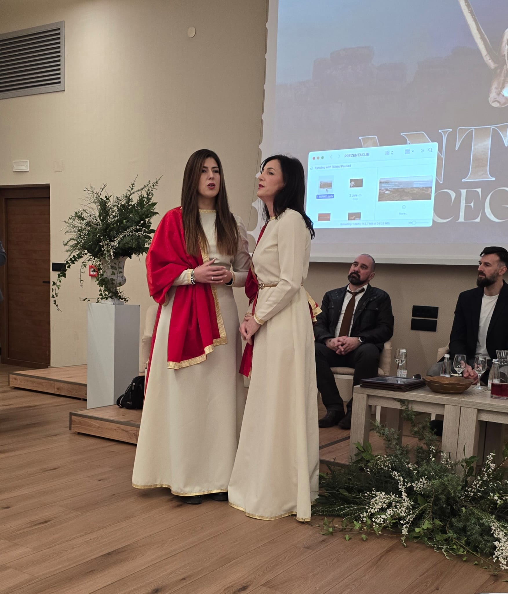 Uslijedio je emotivan trenutak: Duo Nimfe, koji čine Ines Rajić i Marija Buntić, izveo je himnu Antike Hercegovine “Glas iz davnina”, autorsko djelo tima Udruge Vedrina. Spoj glazbe i arhaičnog nadahnuća stvorio je atmosferu u kojoj je prošlost postala opipljiva.