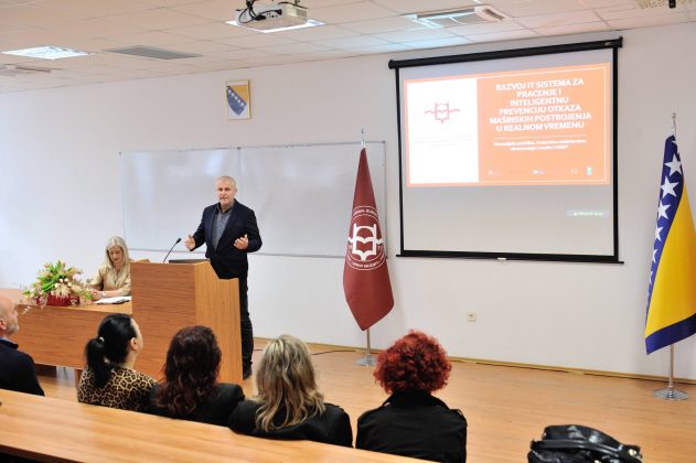 Posebnu pažnju privukla je prezentacija rezultata istraživačko-razvojnog projekta „Razvoj IT sistema za praćenje i inteligentnu prevenciju otkaza mašinskih postrojenja u realnom vremenu“, koji je sufinansiran od strane UNDP i FMON-a kroz grant RD šemu. Prof. dr Safet Isić predstavio je konkretne rezultate projekta, ističući njegovu primjenjivost u industrijskom sektoru i doprinos razvoju pametnih sistema nadzora.