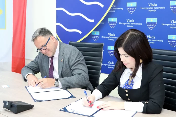 Premijerka Hercegovačko-neretvanskog kantona Marija Buhač i rezidentni predstavnik UNDP-a u BiH Renaud Meyer potpisali su danas, u zgradi Vlade, Sporazum o sufinansiranju između Razvojnog programa Ujedinjenih nacija u BiH i Vlade HNK-a, u cilju ubrzanja provođenja Plana digitalizacije javne uprave u Kantonu. To je rezultat saradnje Vlade HNK-a i UNDP-a u BiH na projektnim aktivnostima ”Unapređenje sistema e-uprave i pružanja e-usluge u HNK-u”, a na tragu Plana digitalizacije HNK-a za period od 2025. do 2028. godine.